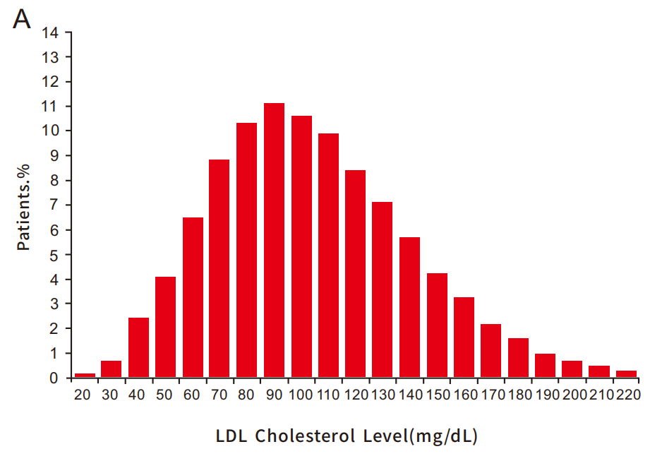 美國(guó)在2000?2006年對(duì)541家醫(yī)院的136905名冠心病住院患者調(diào)查發(fā)現(xiàn),有近50%患者?院時(shí)LDL-C<100mg/dL。結(jié)果提示LDL檢測(cè)存在?定的局限性,需要更加準(zhǔn)確可靠的指標(biāo)能夠及時(shí)發(fā)現(xiàn)CAD?群并盡早治療。