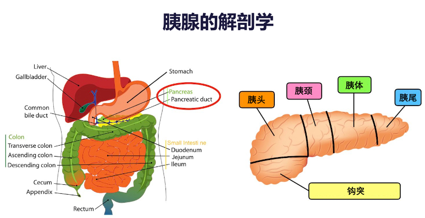 胰腺可分為5個(gè)主要部分:胰頭、鉤突、胰頸、胰體、胰尾