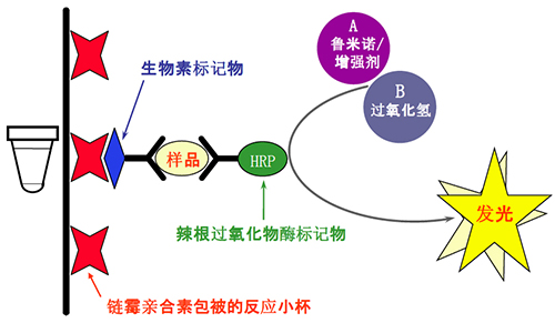 魯米諾與辣根過(guò)氧化物酶系統(tǒng)發(fā)光原理圖