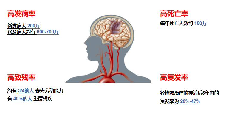 今年5月25日是第19個“世界預防中風日”。“腦卒中”(CerebralStroke)又稱“中風”、“腦血管意外”(CerebralVascularAccident,CVA),是由于腦血管突然發(fā)生破裂出血或因血管堵塞造成大腦缺血、缺氧而引起,具有高發(fā)病率、高致殘率、高死亡率和高復發(fā)率的“四高”特點,是我國居民健康的“第一殺手”,給患者、家庭及全社會帶來沉重負擔。