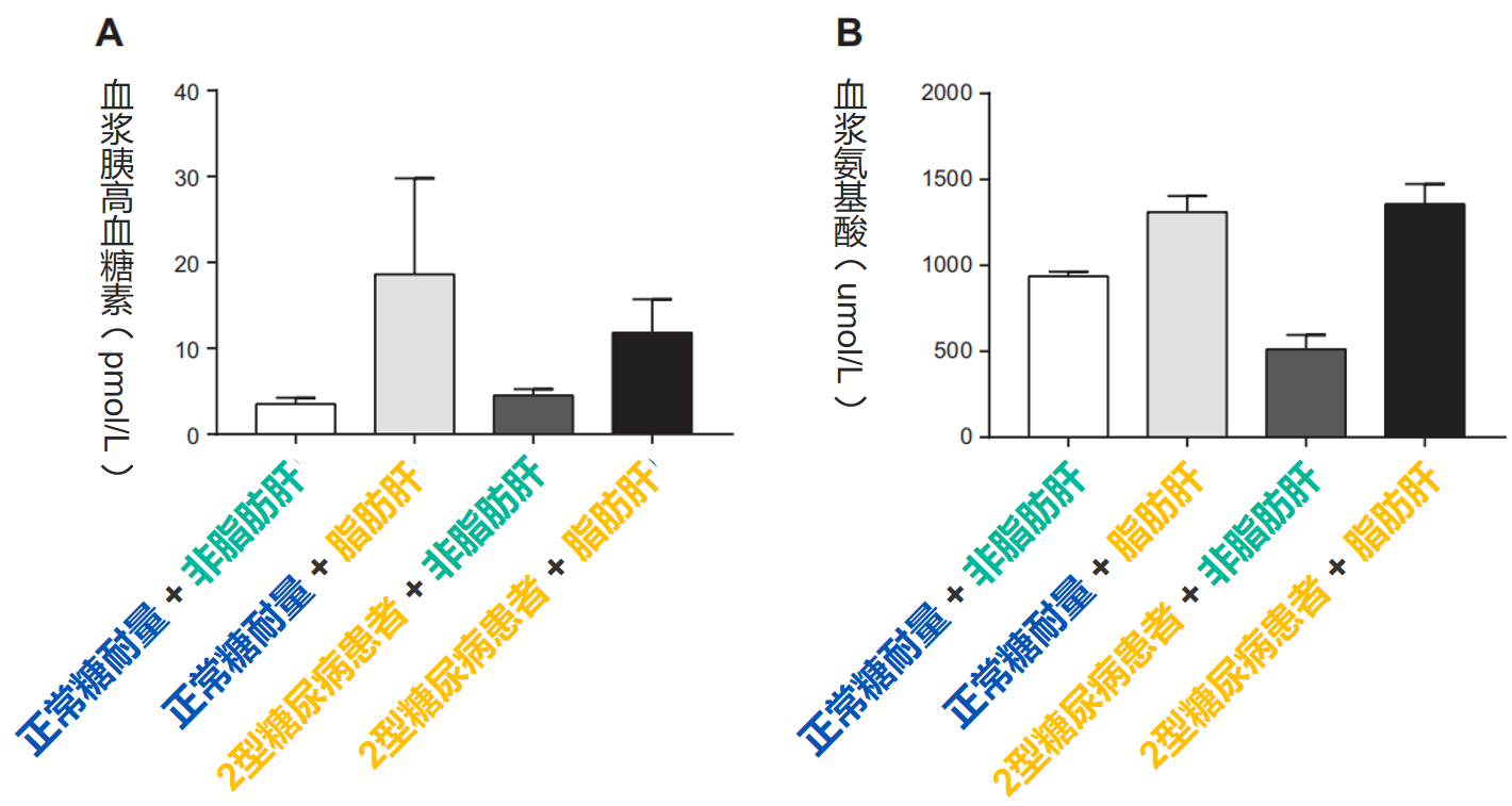 發(fā)表于美國生理學雜志上的研究“Hyperglucagonemia correlates with plasma levels of non-branched-chain amino acids in patients with liver disease independent of type 2 diabetes”指出:T2DM合并NAFLD者血漿氨基酸(特別是具有促胰高血糖素作用的氨基酸)增加,血漿胰高血糖素水平顯著升高,并可能獨立于血糖發(fā)生。