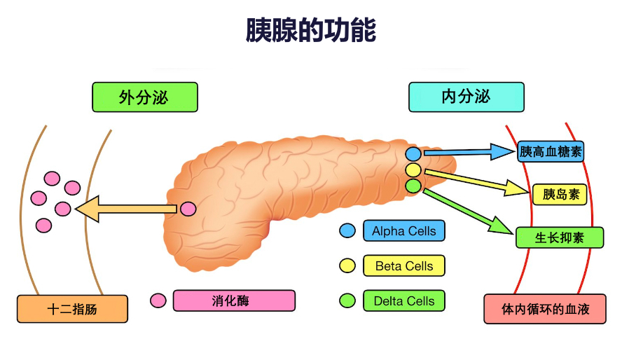 胰腺同時(shí)具有外分泌功能和內(nèi)分泌功能。