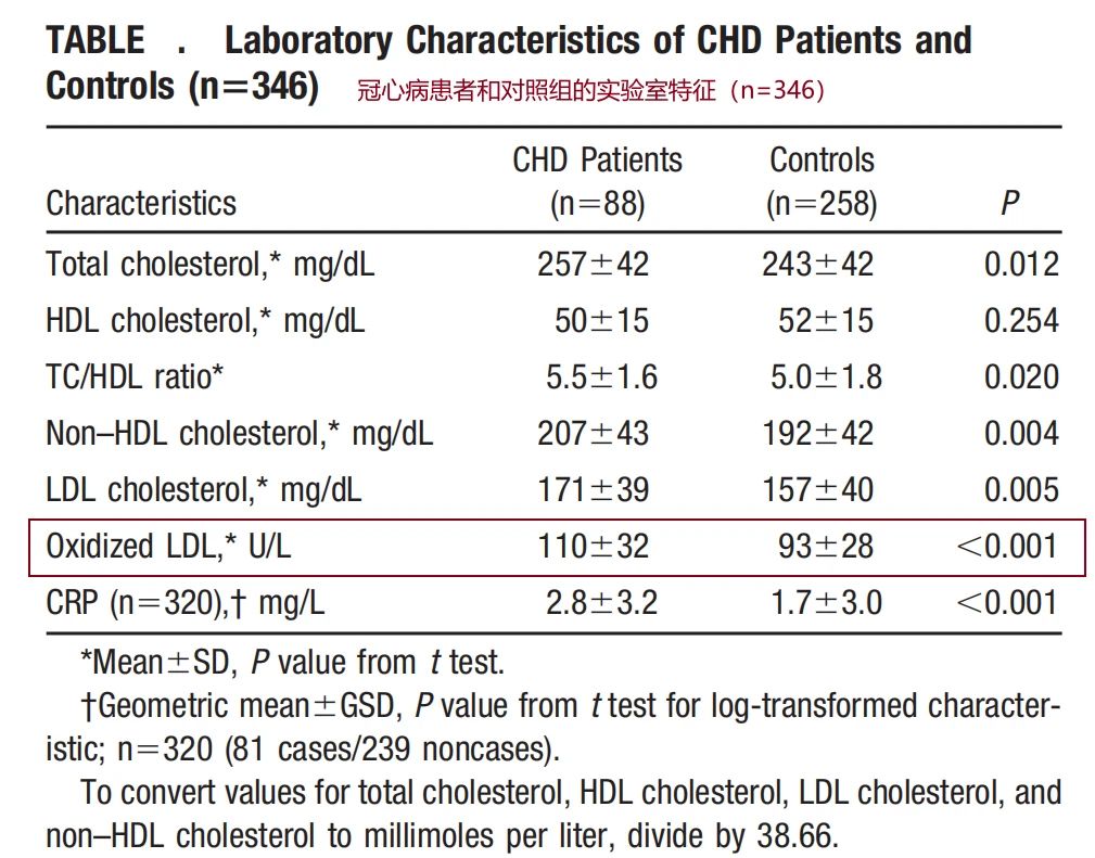 文獻(xiàn)速遞——血漿氧化低密度脂蛋白是急性冠心病事件的強(qiáng)預(yù)測(cè)指標(biāo)